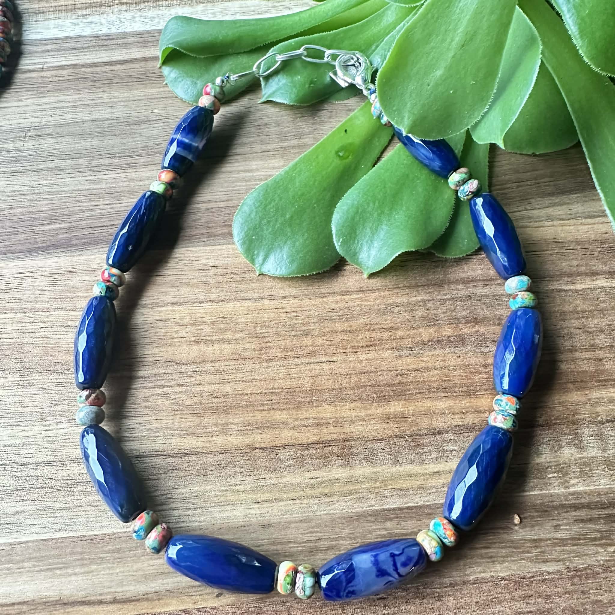 Afghan Lapis Navajo Pearl Necklace (17”-19”)