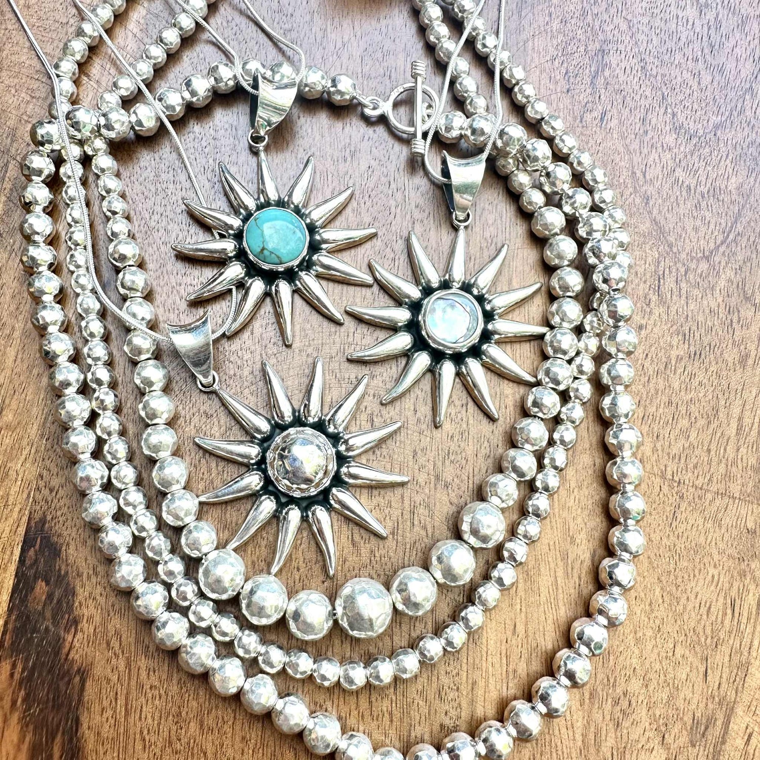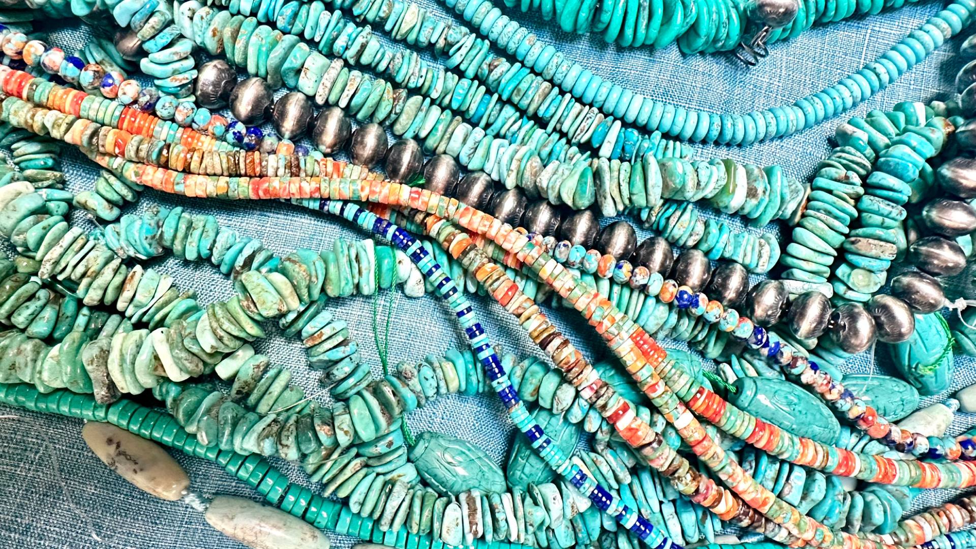 Designed by Sherri and featured at the Tucson Gem Shows, this exclusive collection showcases meticulously handcrafted jewelry with exceptional craftsmanship. Stunning Navajo Pearls, paired with hand-selected stones like turquoise, create one-of-a-kind design made just for you.